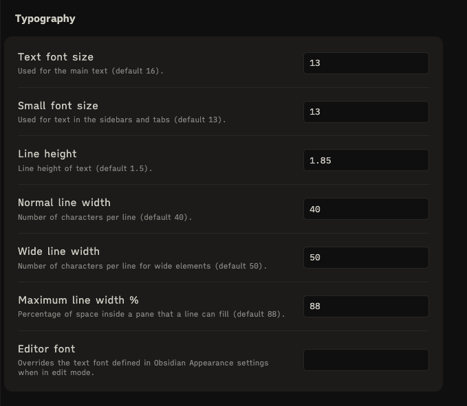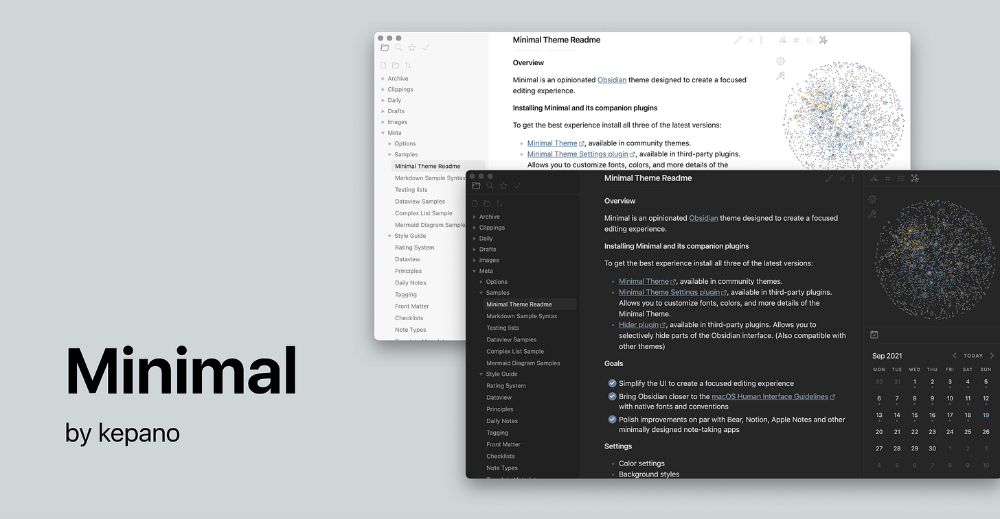 How Obsidian looks is a big reason I use it and have been using it for six plus years now. It’s simplicity is beautiful. We are very fortunate we have a piece of software and a tool that is flexible enough that we can customise it to be exactly how we want.